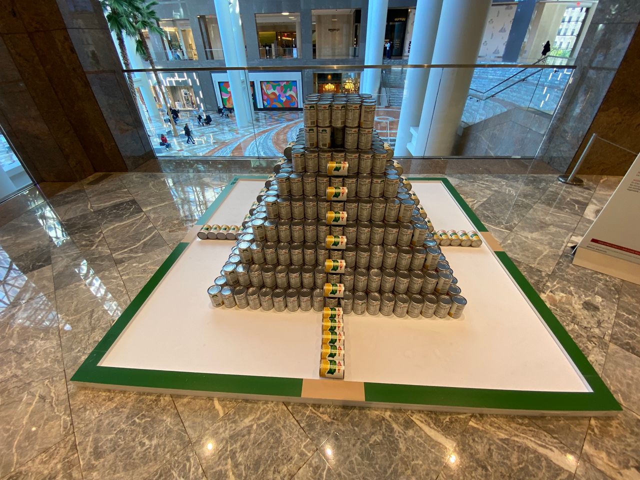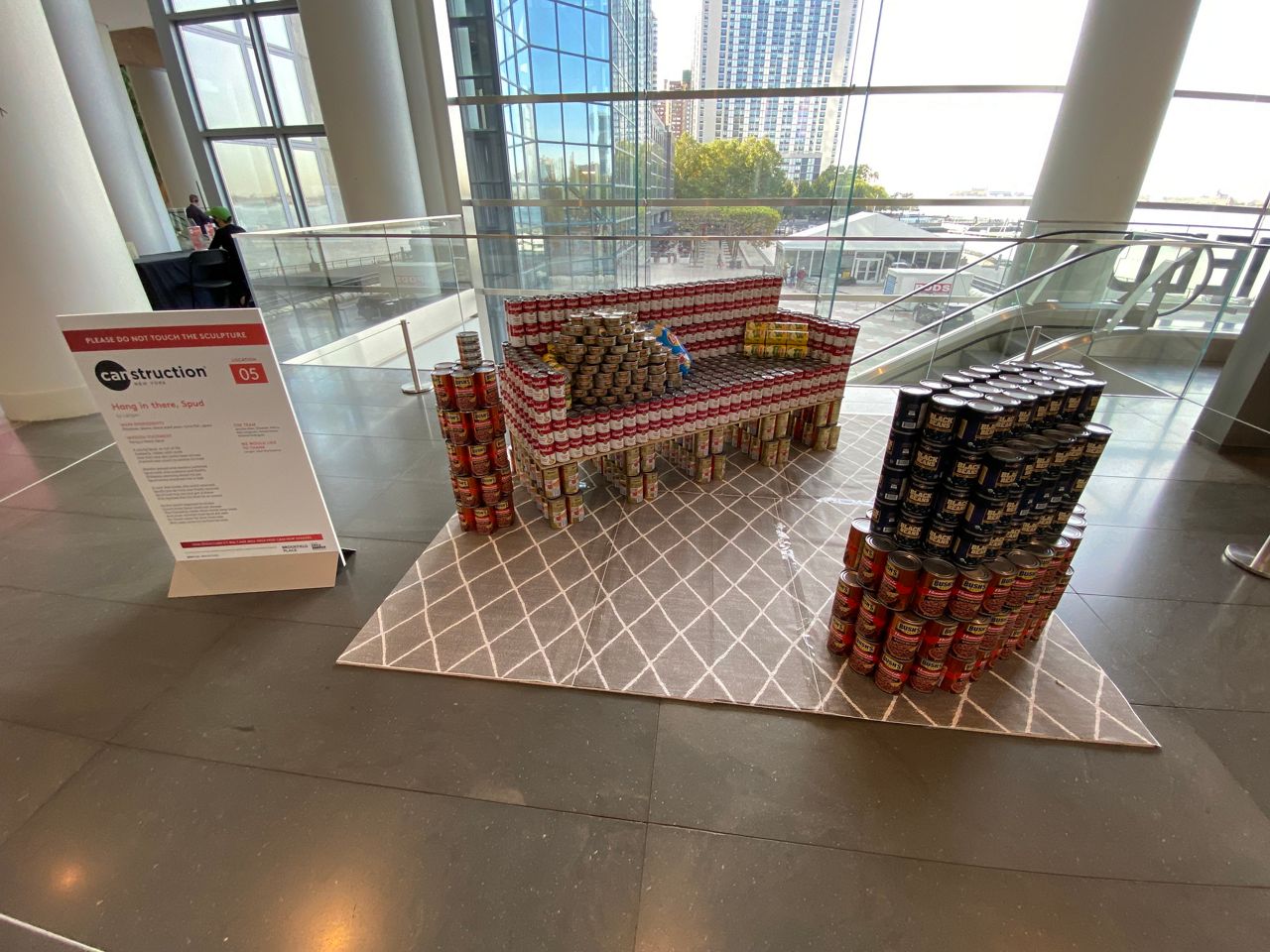 The sculptures not only give Brookfield Place visitors something fun to look at, but the more than 53,000 cans — around 30,000 pounds of food — will all go to City Harvest, the city’s largest food rescue organization that helps feed hungry New Yorkers.