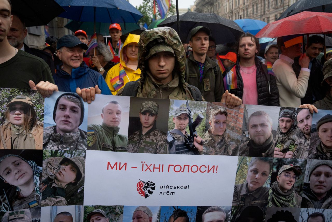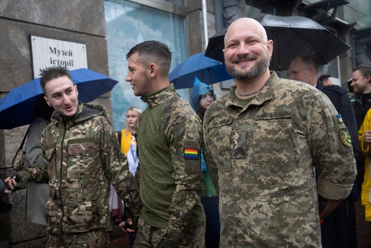 The servicemembers — many wearing rainbow and unicorn patches on their uniforms — called on the government to grant them official partnership rights. They described the event as a pride march but it did not have the celebratory atmosphere of peacetime events and took place in the rain and under a heavy police guard amid threats from counterprotesters.