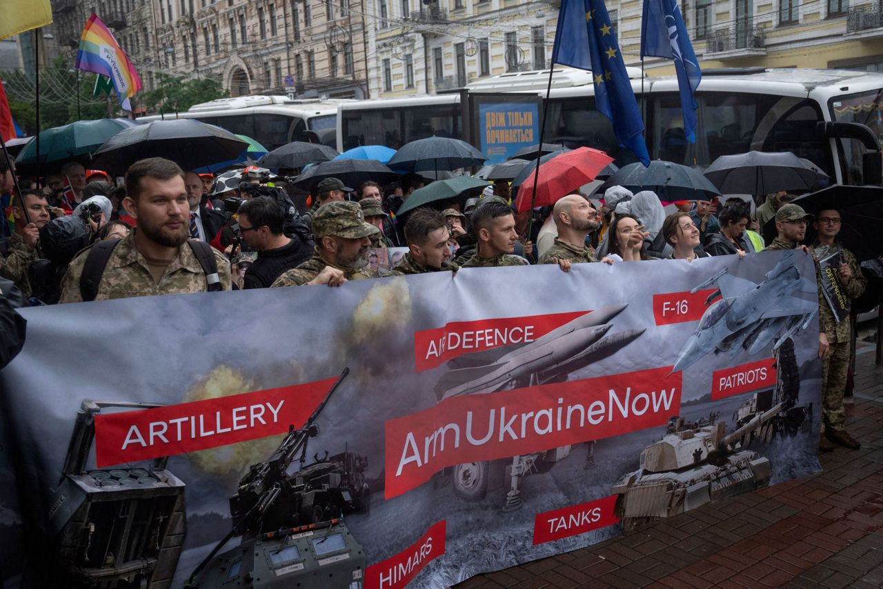 Both those on the LGBTQ rally and the counterprotest took the opportunity to demand that foreign countries come to Ukraine’s aid in its war with Russia, chanting “Arm Ukraine now!” ___ Dmytro Zhyhinas in Kyiv, Ukraine, contributed.